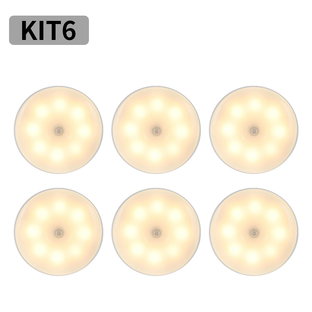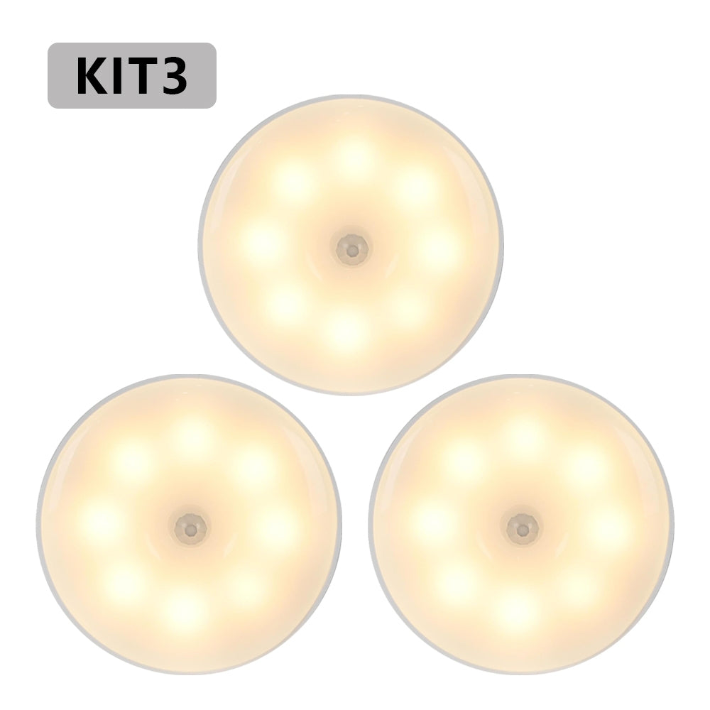 Luminária LED sensor de movimento, luz para armário recarregável, lâmpada noturna magnética USB, iluminação sem fio inteligente, sensor de presença para closet.