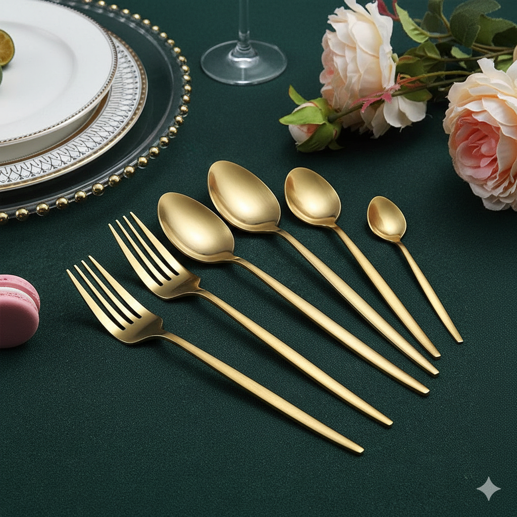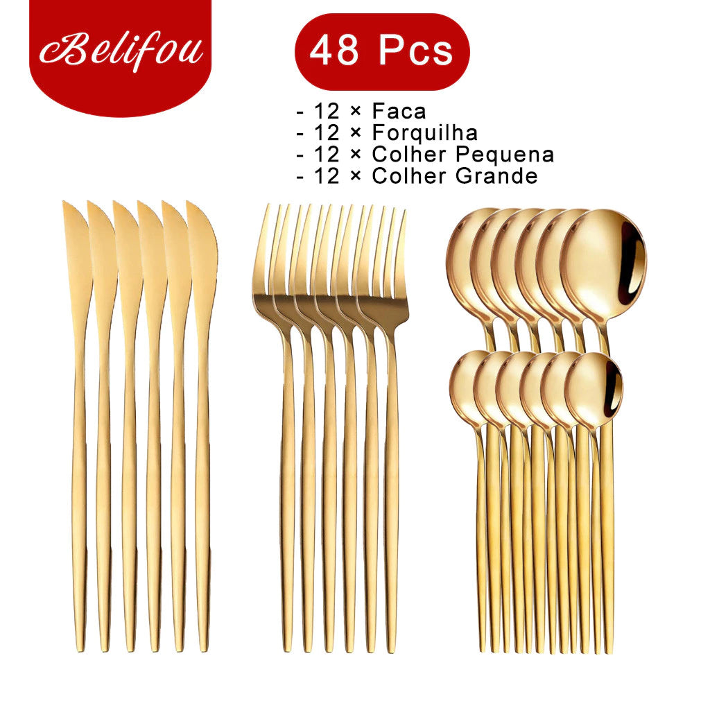 💎 Banho de Alta Resistência: Tecnologia de galvanização de última geração. O brilho dourado é resistente e duradouro, mantendo o aspecto de novo mesmo após inúmeros jantares.