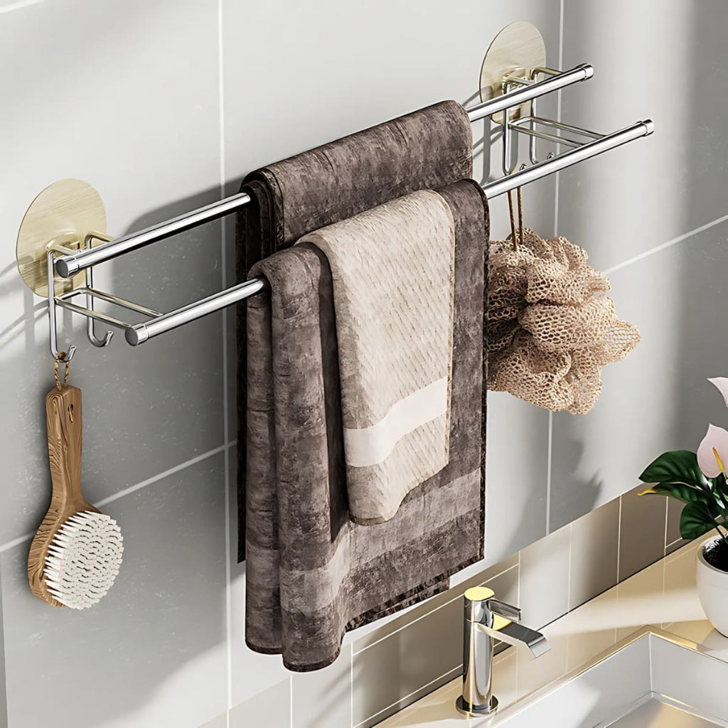 Toalheiro Duplo Adesivo, Barra de Toalha Sem Furar Banheiro, Suporte de Toalha Forte, Toalheiro Anti-Mofo, Organização de Banheiro Inteligente.